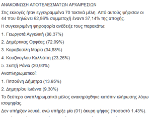 ΑΝΑΚΟΙΝΩΣΗ ΑΠΟΤΕΛΕΣΜΑΤΩΝ ΑΡΧΑΙΡΕΣΙΩΝ