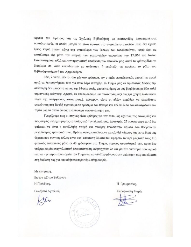 Παρακάτω σας παρουσιάζουμε την επίσημη επιστολή του Συλλόγου προς όλους τους Βουλευτές του Νομού Κερκύρας.